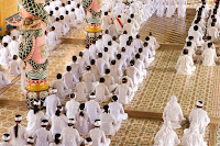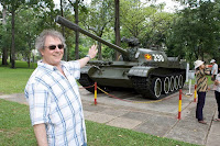 Our airplane landed at Saigon Airport around 9 am. It took us only 20 minutes to get out of the airport and on our bus. We got stuck in a heavy traffic jam though, which amazed everyone. Hundreds of scooters and dozens of cars moved slowly in front and around our bus. A truck full of young soldiers was next to my window for at least 15 minutes.