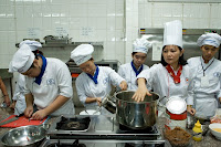 to theschool to study and learn some skills of making crafted things like bamboo lamps, bamboo wind chimes and painting.
