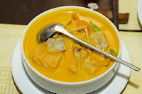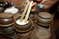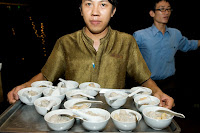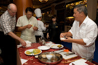 Chef Khai opened Champagne and invited everyone for the final toast. Com Nieu was a special way of cooking rice in the clay-pots. The rice was kind of crispy at the bottom of the pot. Because of the fragile texture of the clay pot and its small neck, the pot had to be broken in order to get the rice inside. The servers broke the pots and threw the rice across the dinning room as our entertainment. Mr. Goerg and Mr. Peter tried to catch the rice too. They eventually caught